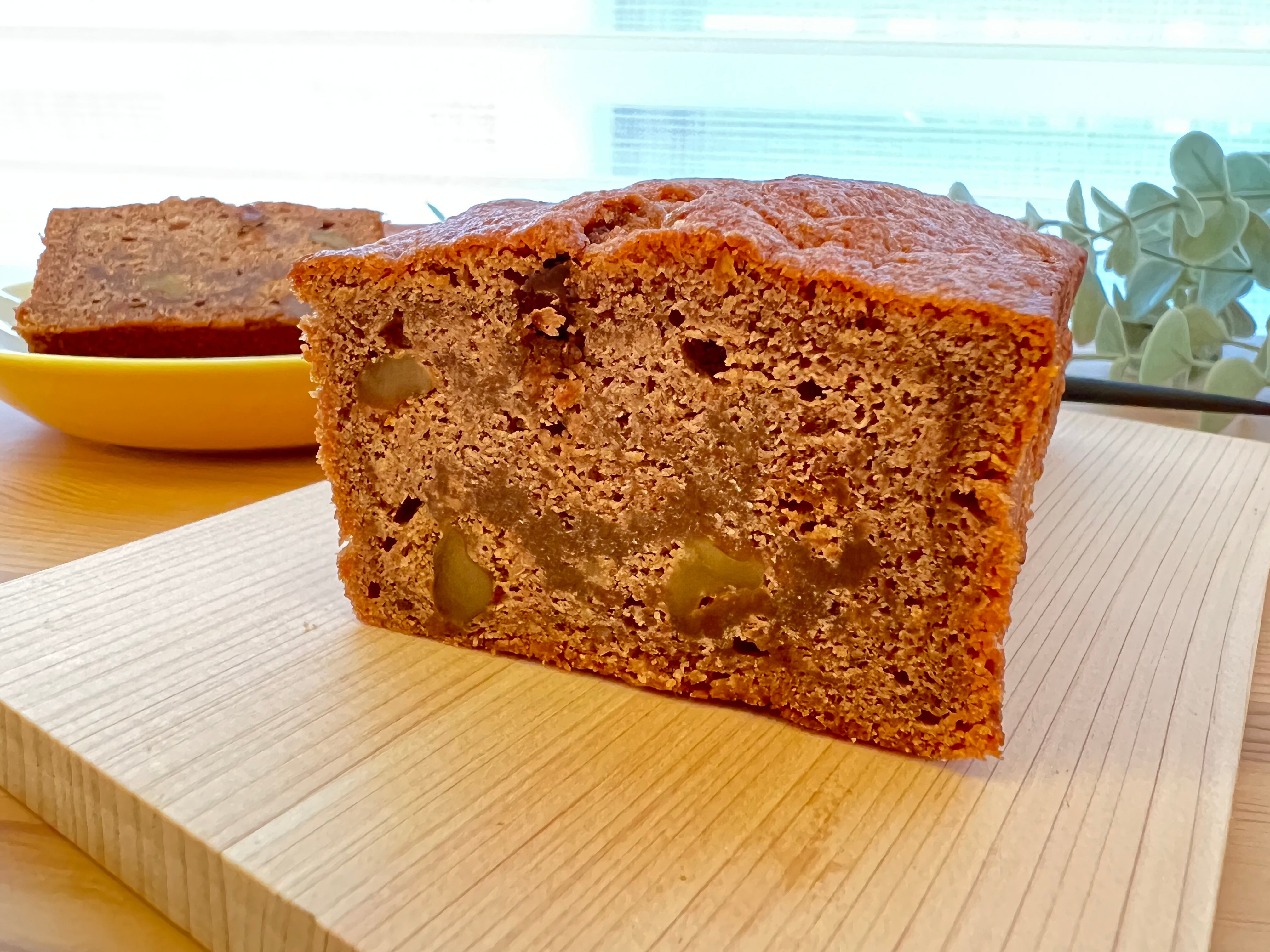 通常のパウンドケーキに含まれる小麦粉の半分をおからに変えて焼き上げたココア風味のパウンドケーキです。